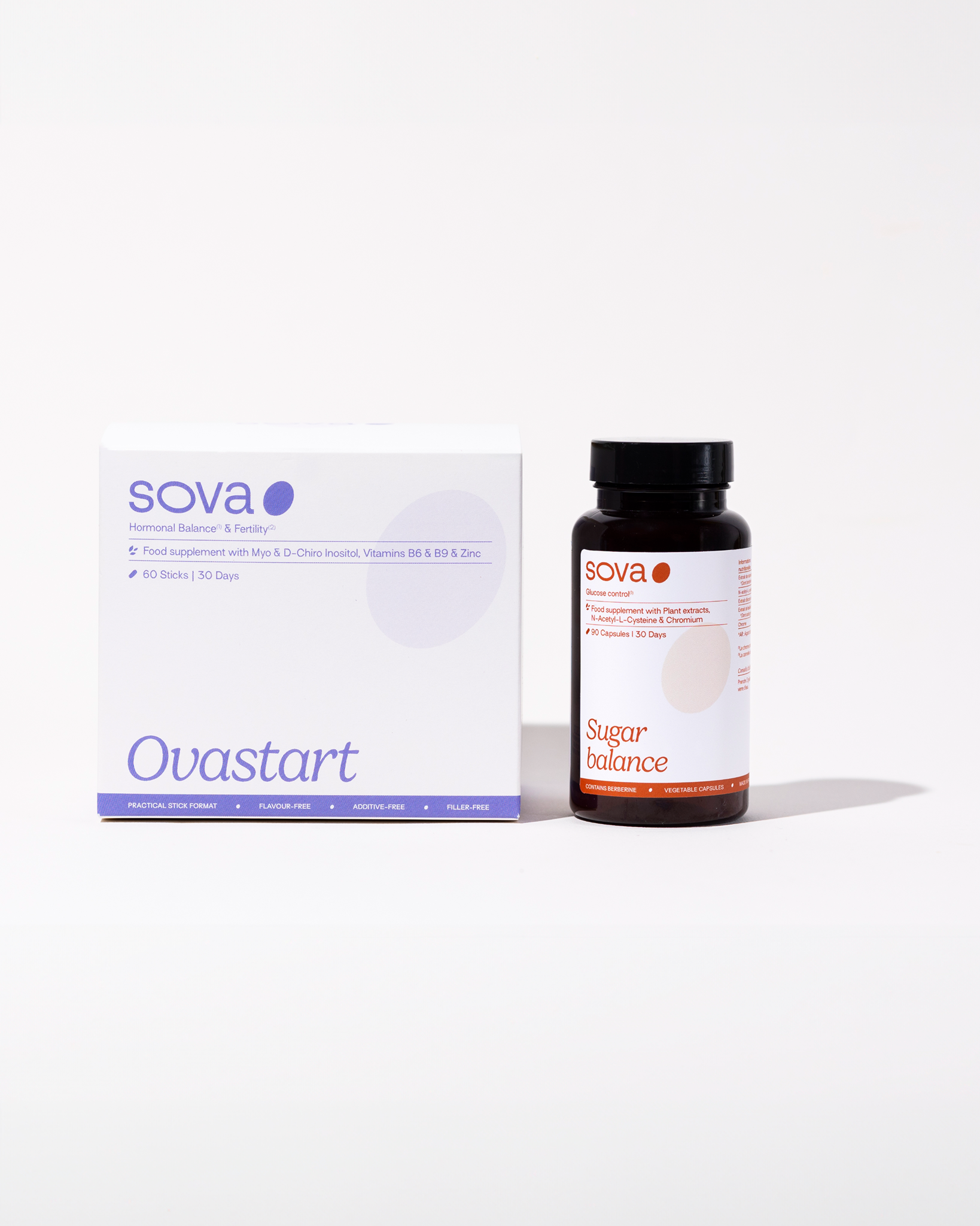 SOVA was created by two sisters with PCOS who wanted products that truly worked. Our formulas are developed in-house with women’s health and micronutrition experts, using ingredients backed by clinical studies and compliant with European regulations.